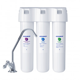 Обратноосмотические фильтры используются для абсолютной защиты от накипи, т.к. полностью устраняют соли жесткости из воды.нетЧисло ступеней очисткиКартриджи последовательно очищают воду и от видимых примесей, и от растворенных. Первый картридж задерживает более крупные частицы, а каждый последующий - более мелкие. Чем больше ступеней - тем лучше фильтр очистит воду: поймает более мелкие видимые частицы ржавчины, песка и ила, успеет захватить из воды максимум растворенных примесей - хлора, нитратов, тяжелых металлов и других.3МинерализацияПроисходит после финишной очистки воды. Необходима прежде всего в фильтре обратного осмоса, поскольку такой фильтр полностью устраняет из воды все примеси, в том числе минералы. Минералы добавляются в оптимальной концентрации - для пользы и привычного вкуса воды.нетПостфильтрацияФинальный этап очистки воды: картриджи постфильтрации удаляют самые мелкие механические частицы и кондиционируют воду, придавая ей более приятный вкус.нетНакопительная емкостьОбычно нужна в фильтрах обратного осмоса. Глубокая фильтрация требует времени. Чтобы Вам не приходилось ждать, пока вода наберется в чайник или кастрюлю, почти во всех моделях используется накопительный бак для чистой воды или другая емкость. В стандартном фильтре обратного осмоса под мойку воды в баке достаточно для семьи из 5-6 человек.нетФильтрующий модуль в комплектедаОтдельный крандаДавление в водопроводе не более, атмМаксимальное давление воды на входе в систему, при котором возможна стабильная работа фильтра.6,5Ширина, смОбратите внимание на габариты фильтра, и измерьте, сколько свободного пространства в предполагаемом месте установки.26,0Глубина, смОбратите внимание на габариты фильтра, и измерьте, сколько свободного пространства в предполагаемом месте установки.9,0Защита корпуса от гидроударовдаИсходная водаЖесткая вода – вода с избытком минеральных солей. От нее появляется накипь в чайнике, известковый налет на сантехнике и разводы на посуде. Мягкая вода – та, в которой мало минеральных солей. Нет накипи в чайнике и разводов на посуде. Фильтры для мутной воды и фильтры от ржавчины, как правило, имеют несколько стадий очистки и дополнительный полипропиленовый картридж. Он задерживает механические частицы ила, песка и ржавчины и защищает картриджи более глубокой очистки.мягкаяУстраняет мутностьМутность водопроводной воды может говорить о том, что в ней много мелких механических частиц. Важно, чтобы в фильтре был установлен дополнительные картридж механической предфильтрации (полипропиленовый) - он продлит жизнь остальным картриджам более тонкой очистки.даУстраняет ржавчину, бурый осадокЛюбой фильтр под мойку удалит из воды крупные и мелкие частицы ржавчины. Некоторые фильтры имеют повышенный ресурс по железу: они дольше служат в такой воде, поскольку лучше подходят для удаления из воды железа и механических частиц ржавчины.нетЗащита от бактерийВсе проточные фильтры в той или иной степени защищают от бактерий. Например, добавление серебра препятствует их размножению. Это стандартная степень защиты. Если в семье есть дети, пожилые люди или аллергики, воду рекомендуется обеззараживать, то есть полностью удалять микроорганизмы. Повышенную защиту от бактерий дают фильтры с половолоконной мембраной. Это пучок труб