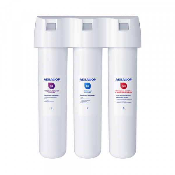 Обратноосмотические фильтры используются для абсолютной защиты от накипи, т.к. полностью устраняют соли жесткости из воды.нетЧисло ступеней очисткиКартриджи последовательно очищают воду и от видимых примесей, и от растворенных. Первый картридж задерживает более крупные частицы, а каждый последующий - более мелкие. Чем больше ступеней - тем лучше фильтр очистит воду: поймает более мелкие видимые частицы ржавчины, песка и ила, успеет захватить из воды максимум растворенных примесей - хлора, нитратов, тяжелых металлов и других.4МинерализацияПроисходит после финишной очистки воды. Необходима прежде всего в фильтре обратного осмоса, поскольку такой фильтр полностью устраняет из воды все примеси, в том числе минералы. Минералы добавляются в оптимальной концентрации - для пользы и привычного вкуса воды.нетПостфильтрацияФинальный этап очистки воды: картриджи постфильтрации удаляют самые мелкие механические частицы и кондиционируют воду, придавая ей более приятный вкус.нетНакопительная емкостьОбычно нужна в фильтрах обратного осмоса. Глубокая фильтрация требует времени. Чтобы Вам не приходилось ждать, пока вода наберется в чайник или кастрюлю, почти во всех моделях используется накопительный бак для чистой воды или другая емкость. В стандартном фильтре обратного осмоса под мойку воды в баке достаточно для семьи из 5-6 человек.нетФильтрующий модуль в комплектедаОтдельный крандаДавление в водопроводе не более, атмМаксимальное давление воды на входе в систему, при котором возможна стабильная работа фильтра.6,5Ширина, смОбратите внимание на габариты фильтра, и измерьте, сколько свободного пространства в предполагаемом месте установки.26,0Глубина, смОбратите внимание на габариты фильтра, и измерьте, сколько свободного пространства в предполагаемом месте установки.9,0Защита корпуса от гидроударовдаИсходная водаЖесткая вода – вода с избытком минеральных солей. От нее появляется накипь в чайнике, известковый налет на сантехнике и разводы на посуде. Мягкая вода – та, в которой мало минеральных солей. Нет накипи в чайнике и разводов на посуде. Фильтры для мутной воды и фильтры от ржавчины, как правило, имеют несколько стадий очистки и дополнительный полипропиленовый картридж. Он задерживает механические частицы ила, песка и ржавчины и защищает картриджи более глубокой очистки.мягкаяУстраняет мутностьМутность водопроводной воды может говорить о том, что в ней много мелких механических частиц. Важно, чтобы в фильтре был установлен дополнительные картридж механической предфильтрации (полипропиленовый) - он продлит жизнь остальным картриджам более тонкой очистки.даУстраняет ржавчину, бурый осадокЛюбой фильтр под мойку удалит из воды крупные и мелкие частицы ржавчины. Некоторые фильтры имеют повышенный ресурс по железу: они дольше служат в такой воде, поскольку лучше подходят для удаления из воды железа и механических частиц ржавчины.даЗащита от бактерийВсе проточные фильтры в той или иной степени защищают от бактерий. Например, добавление серебра препятствует их размножению. Это стандартная степень защиты. Если в семье есть дети, пожилые люди или аллергики, воду рекомендуется обеззараживать, то есть полностью удалять микроорганизмы. Повышенную защиту от бактерий дают фильтры с половолоконной мембраной. Это пучок трубо