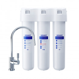 Обратноосмотические фильтры используются для абсолютной защиты от накипи, т.к. полностью устраняют соли жесткости из воды.нетЧисло ступеней очисткиКартриджи последовательно очищают воду и от видимых примесей, и от растворенных. Первый картридж задерживает более крупные частицы, а каждый последующий - более мелкие. Чем больше ступеней - тем лучше фильтр очистит воду: поймает более мелкие видимые частицы ржавчины, песка и ила, успеет захватить из воды максимум растворенных примесей - хлора, нитратов, тяжелых металлов и других.4МинерализацияПроисходит после финишной очистки воды. Необходима прежде всего в фильтре обратного осмоса, поскольку такой фильтр полностью устраняет из воды все примеси, в том числе минералы. Минералы добавляются в оптимальной концентрации - для пользы и привычного вкуса воды.нетПостфильтрацияФинальный этап очистки воды: картриджи постфильтрации удаляют самые мелкие механические частицы и кондиционируют воду, придавая ей более приятный вкус.нетНакопительная емкостьОбычно нужна в фильтрах обратного осмоса. Глубокая фильтрация требует времени. Чтобы Вам не приходилось ждать, пока вода наберется в чайник или кастрюлю, почти во всех моделях используется накопительный бак для чистой воды или другая емкость. В стандартном фильтре обратного осмоса под мойку воды в баке достаточно для семьи из 5-6 человек.нетФильтрующий модуль в комплектедаОтдельный крандаДавление в водопроводе не более, атмМаксимальное давление воды на входе в систему, при котором возможна стабильная работа фильтра.6,5Ширина, смОбратите внимание на габариты фильтра, и измерьте, сколько свободного пространства в предполагаемом месте установки.26,0Глубина, смОбратите внимание на габариты фильтра, и измерьте, сколько свободного пространства в предполагаемом месте установки.9,0Защита корпуса от гидроударовдаИсходная водаЖесткая вода – вода с избытком минеральных солей. От нее появляется накипь в чайнике, известковый налет на сантехнике и разводы на посуде. Мягкая вода – та, в которой мало минеральных солей. Нет накипи в чайнике и разводов на посуде. Фильтры для мутной воды и фильтры от ржавчины, как правило, имеют несколько стадий очистки и дополнительный полипропиленовый картридж. Он задерживает механические частицы ила, песка и ржавчины и защищает картриджи более глубокой очистки.мягкаяУстраняет мутностьМутность водопроводной воды может говорить о том, что в ней много мелких механических частиц. Важно, чтобы в фильтре был установлен дополнительные картридж механической предфильтрации (полипропиленовый) - он продлит жизнь остальным картриджам более тонкой очистки.даУстраняет ржавчину, бурый осадокЛюбой фильтр под мойку удалит из воды крупные и мелкие частицы ржавчины. Некоторые фильтры имеют повышенный ресурс по железу: они дольше служат в такой воде, поскольку лучше подходят для удаления из воды железа и механических частиц ржавчины.даЗащита от бактерийВсе проточные фильтры в той или иной степени защищают от бактерий. Например, добавление серебра препятствует их размножению. Это стандартная степень защиты. Если в семье есть дети, пожилые люди или аллергики, воду рекомендуется обеззараживать, то есть полностью удалять микроорганизмы. Повышенную защиту от бактерий дают фильтры с половолоконной мембраной. Это пучок трубо