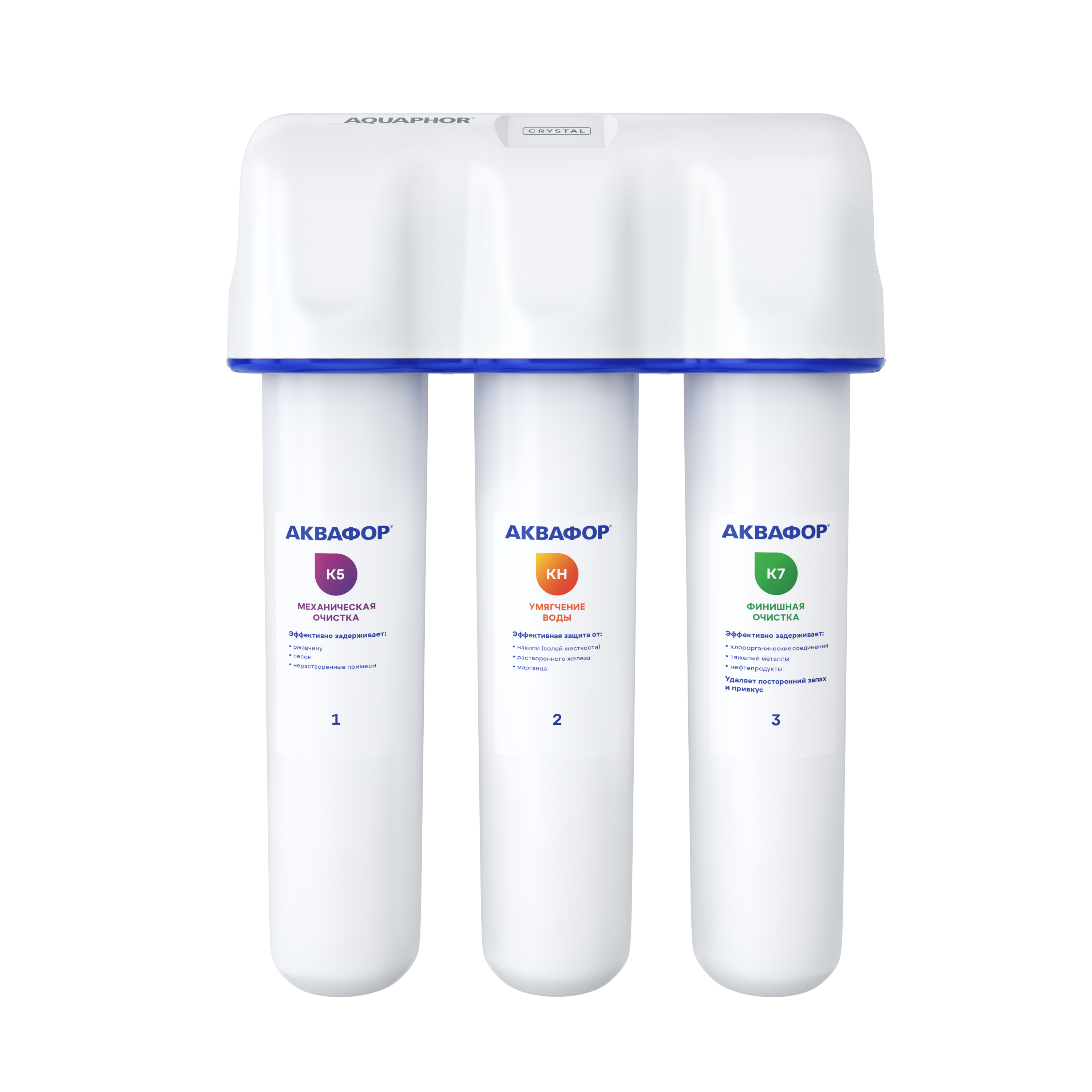 Умягчающий модуль KH эффективен для воды умеренной жесткости. Для показателей выше 5 мг-экв/л рекомендуем водоочиститель обратноосмотического типа Аквафор Кристалл ОСМО или автоматы питьевой воды Аквафор DWM.