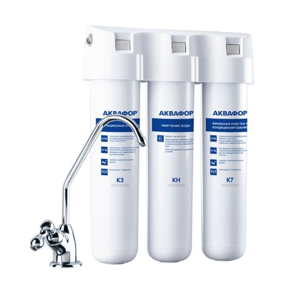 Обратноосмотические фильтры используются для абсолютной защиты от накипи, т.к. полностью устраняют соли жесткости из воды.нетЧисло ступеней очисткиКартриджи последовательно очищают воду и от видимых примесей, и от растворенных. Первый картридж задерживает более крупные частицы, а каждый последующий - более мелкие. Чем больше ступеней - тем лучше фильтр очистит воду: поймает более мелкие видимые частицы ржавчины, песка и ила, успеет захватить из воды максимум растворенных примесей - хлора, нитратов, тяжелых металлов и других.3МинерализацияПроисходит после финишной очистки воды. Необходима прежде всего в фильтре обратного осмоса, поскольку такой фильтр полностью устраняет из воды все примеси, в том числе минералы. Минералы добавляются в оптимальной концентрации - для пользы и привычного вкуса воды.нетПостфильтрацияФинальный этап очистки воды: картриджи постфильтрации удаляют самые мелкие механические частицы и кондиционируют воду, придавая ей более приятный вкус.нетНакопительная емкостьОбычно нужна в фильтрах обратного осмоса. Глубокая фильтрация требует времени. Чтобы Вам не приходилось ждать, пока вода наберется в чайник или кастрюлю, почти во всех моделях используется накопительный бак для чистой воды или другая емкость. В стандартном фильтре обратного осмоса под мойку воды в баке достаточно для семьи из 5-6 человек.нетФильтрующий модуль в комплектедаОтдельный крандаДавление в водопроводе не более, атмМаксимальное давление воды на входе в систему, при котором возможна стабильная работа фильтра.6,5Ширина, смОбратите внимание на габариты фильтра, и измерьте, сколько свободного пространства в предполагаемом месте установки.26,0Глубина, смОбратите внимание на габариты фильтра, и измерьте, сколько свободного пространства в предполагаемом месте установки.9,0Защита корпуса от гидроударовдаИсходная водаЖесткая вода – вода с избытком минеральных солей. От нее появляется накипь в чайнике, известковый налет на сантехнике и разводы на посуде. Мягкая вода – та, в которой мало минеральных солей. Нет накипи в чайнике и разводов на посуде. Фильтры для мутной воды и фильтры от ржавчины, как правило, имеют несколько стадий очистки и дополнительный полипропиленовый картридж. Он задерживает механические частицы ила, песка и ржавчины и защищает картриджи более глубокой очистки.жёсткаяУстраняет мутностьМутность водопроводной воды может говорить о том, что в ней много мелких механических частиц. Важно, чтобы в фильтре был установлен дополнительные картридж механической предфильтрации (полипропиленовый) - он продлит жизнь остальным картриджам более тонкой очистки.нетУстраняет ржавчину, бурый осадокЛюбой фильтр под мойку удалит из воды крупные и мелкие частицы ржавчины. Некоторые фильтры имеют повышенный ресурс по железу: они дольше служат в такой воде, поскольку лучше подходят для удаления из воды железа и механических частиц ржавчины.нетЗащита от бактерийВсе проточные фильтры в той или иной степени защищают от бактерий. Например, добавление серебра препятствует их размножению. Это стандартная степень защиты. Если в семье есть дети, пожилые люди или аллергики, воду рекомендуется обеззараживать, то есть полностью удалять микроорганизмы. Повышенную защиту от бактерий дают фильтры с половолоконной мембраной. Это пучок тр