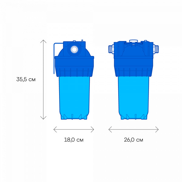 КомплектацияГотовый фильтр состоит из корпуса и картриджа для очистки воды. Если вы приобретаете только корпус, необходимо отдельно купить подходящий к нему картридж: это может быть картридж для механической очистки воды от ржавчины, картридж для глубокой очистки воды от хлора.готовый фильтрВодаКартриджи и корпуса фильтров рассчитаны на определенную температуру воды. Данные технические характеристики важно учитывать, поскольку от этого зависит качество очистки и срок службы фильтра.холоднаяМатериал корпусаПищевой пластик: Допущен к контакту с пищевыми продуктами. Нержавеющая сталь: Долговечный и безопасный корпус из нержавеющей пищевой стали.пищевой пластикОчисткаМеханическая очистка: Задерживает ржавчину, ил, песок, как “сито”. В корпусе предфильтра с механической очисткой установлен полипропиленовый модуль. Глубокая очистка: Подходит, чтобы купать детей в чистой воде. Делает прием душа и умывание более приятным. Фильтр глубокой очистки воды во всей квартире не только останавливает ржавчину, ил, песок, но и впитывает растворенные опасные примеси, как губка. Удаляет из воды хлор, хлорорганические вещества, пестициды и другие загрязнители.механическаяДля холодной водыда