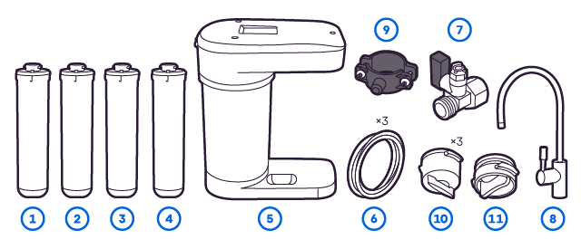 Финальный этап очистки воды: картриджи постфильтрации удаляют самые мелкие механические частицы и кондиционируют воду, придавая ей более приятный вкус.
